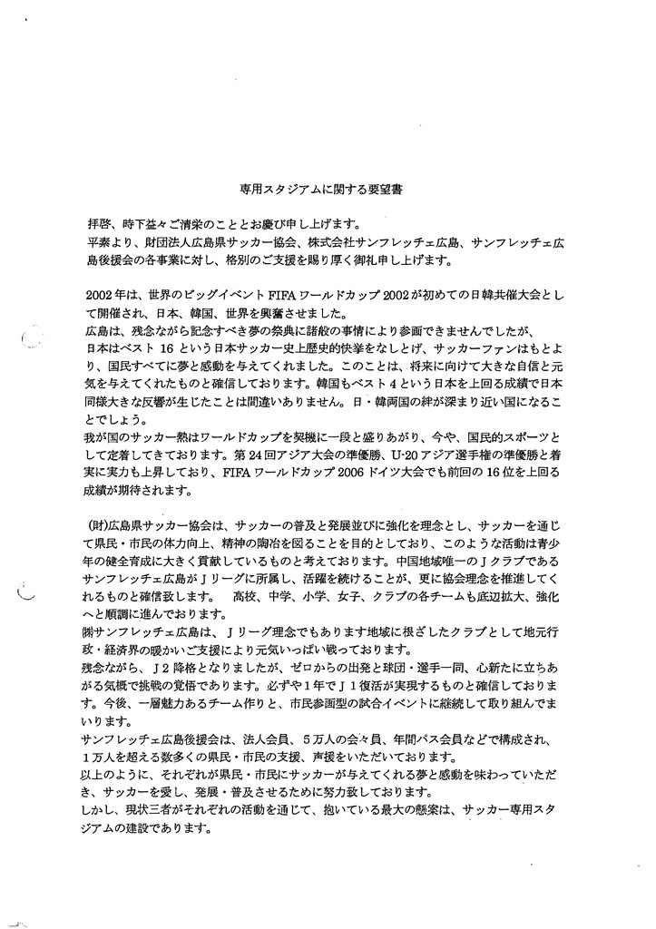 サンフレッチェ広島後援会 (事務局) 今西事務局長