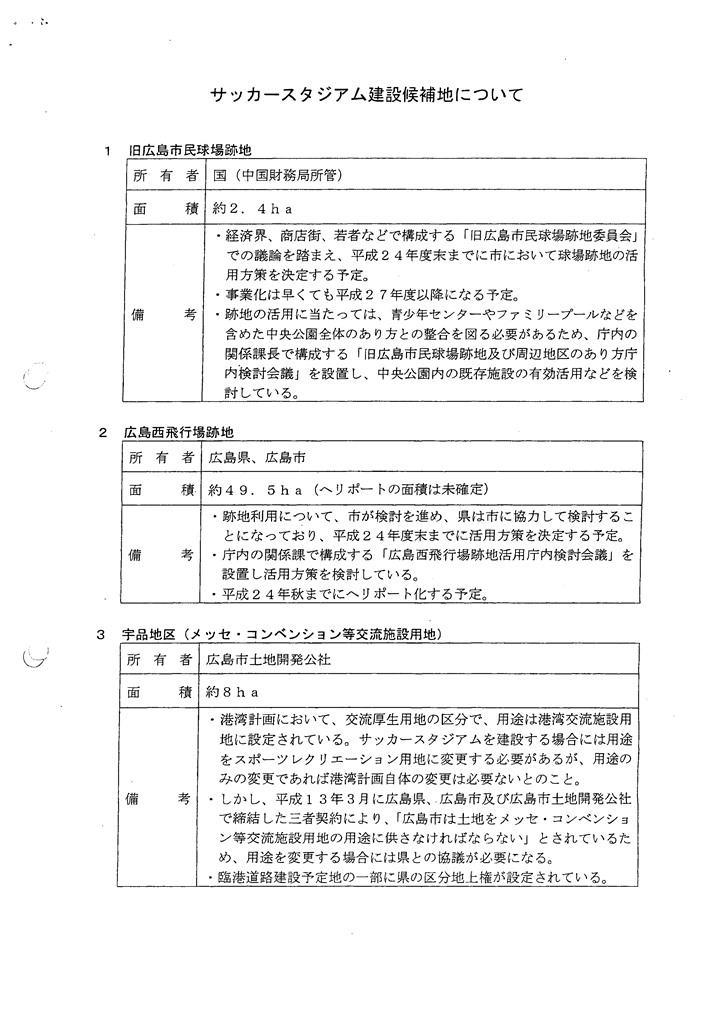 - これまで, 行政に対し, サッカースタジアムの建設を一方的に要望してきたのみであり,