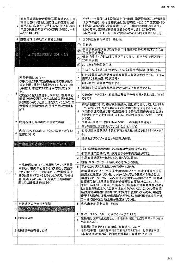 - 旧市民球場跡地及び広島西飛行場の現状等については, 変更なし。